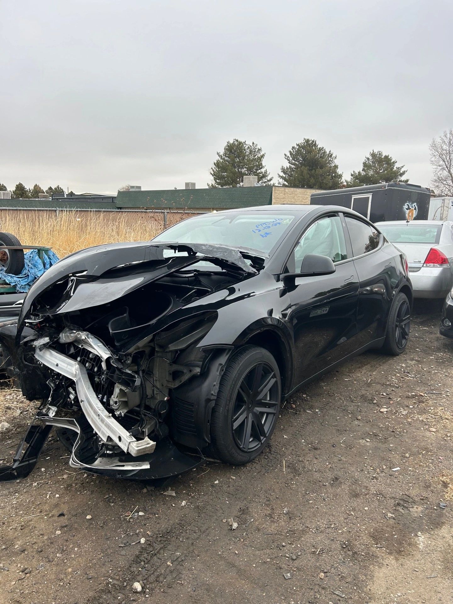 It would be very nice to find a unicorn buyer that needs a parts car. Its totaled, but the damage is like as if someone sawed the frunk off at the wheels. Every airbag did deploy, but surface and mechanical parts behind the damage seem serviceable enough. This is especially true for body panels, glass, wheels and tires, suspension, etc.